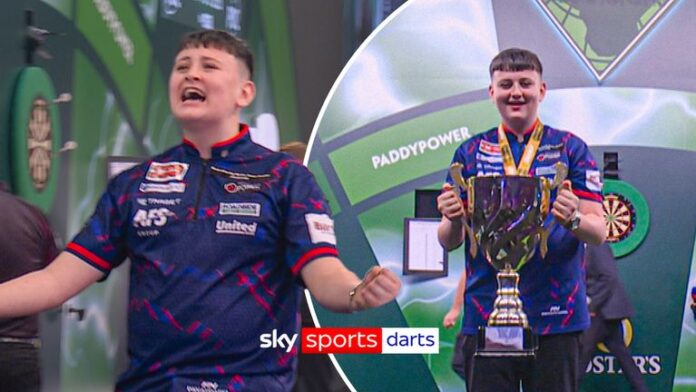 The teenager, who is tipped to be the hottest young darts sensation since Luke Littler, pinned a perfect leg to beat Ethan Hawden 4-1 , averaging 103 in his opening match of a day which saw him claim an event win.