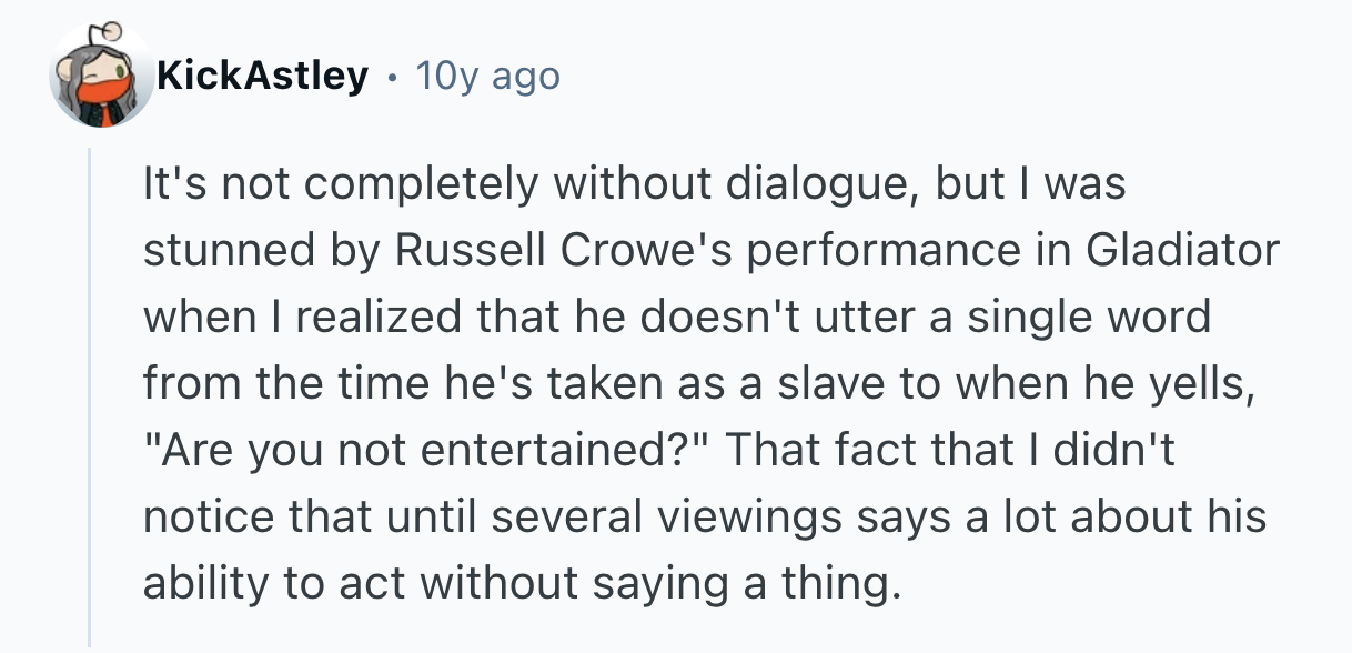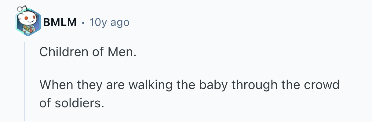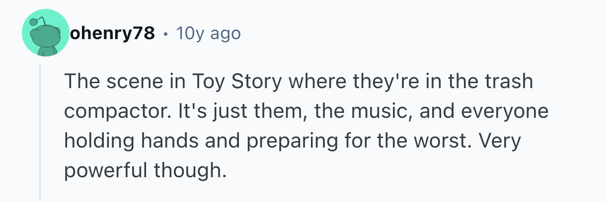 That’s why user conr9774 asked r/AskReddit, “What is the best movie scene without any dialogue?”