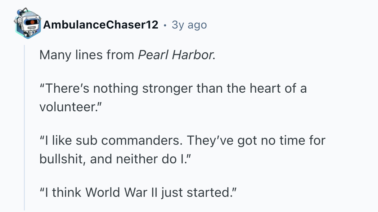 That’s why user WorriedLeading2081 asked r/AskReddit, “What’s the corniest line of dialogue in a movie ever?”