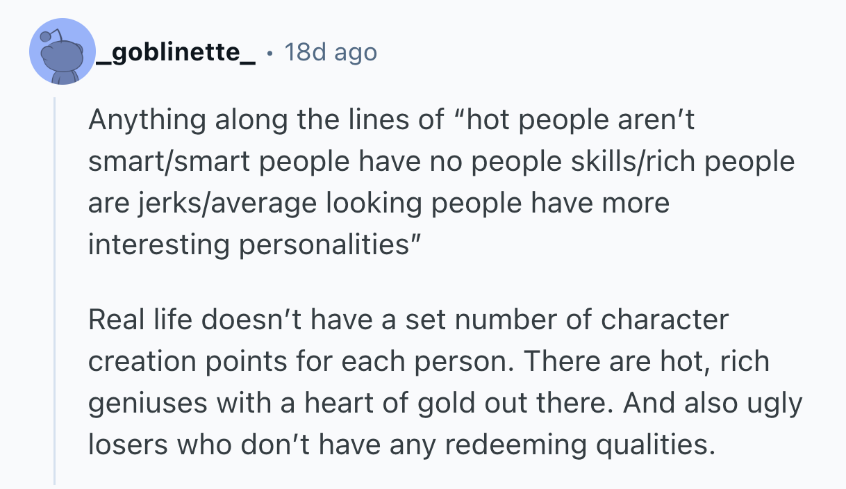 But other on-screen mainstays aren’t always so easy for people to disentangle from reality, even when it really seems like they should know better. For example, “I have ADHD,” user AnonPinkLady told r/AskReddit. “No, it doesn’t mean I’m just always so funny and quirky and silly. It’s so exhausting and draining and difficult to do everyday things.”