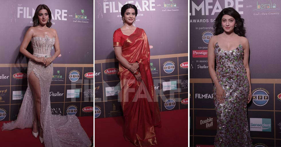 The red carpet of the 70th Filmfare Awards South with Kerala Tourism sparkled with stunning couture and graceful silhouettes. Pranitha Subhash, Nidhhi Agerwal and more made striking appearances in their own distinctive styles, reflecting the versatility and glamour of women’s fashion.
