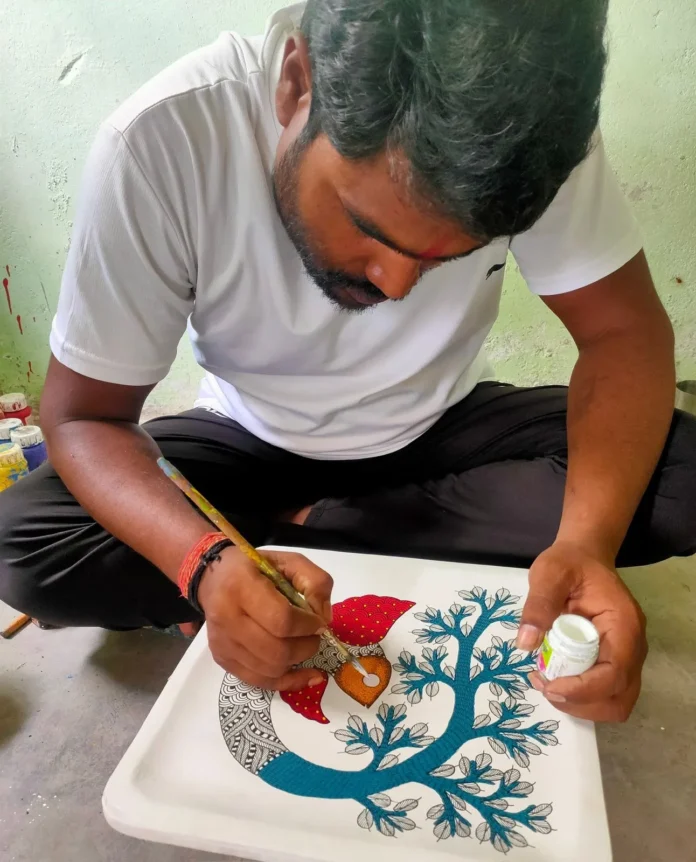 For years, the income from his craft was seasonal and uncertain. The monsoon meant no painting. Galleries came and went. During COVID, the work dried up entirely.