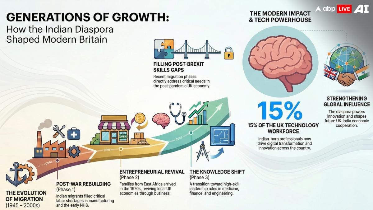 ABP Live Deep Dive: A newly released white paper in London has documented how generations of Indians have played a decisive role in shaping the United Kingdom’s economy, public services, and global standing. The report, unveiled on 5 February 2026, presents one of the most detailed examinations of Indian migration to Britain since India’s independence and highlights how this community has been central to the country’s transformation across eras.
