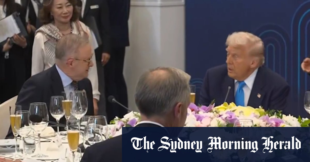 Anthony Albanese and Donald Trump have dined side by side in South Korea, as the US President prepares to meet China’s leader.