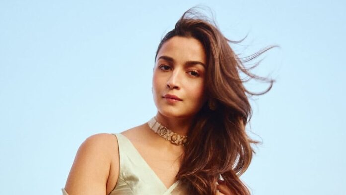 Bhatt’s choice of accessories followed the same philosophy of lightness. She wore a pearl choker with an uncut diamond pendant from Jewels By Moksh, along with matching stud earrings that carried on the pendant’s design. Sun-kissed and softly sculpted, Riviera Lynn kept the makeup in sync with the softer aesthetic of the look. She went with highlighter, gentle contouring, a wash of blush and coppery eyeshadow and mascara.