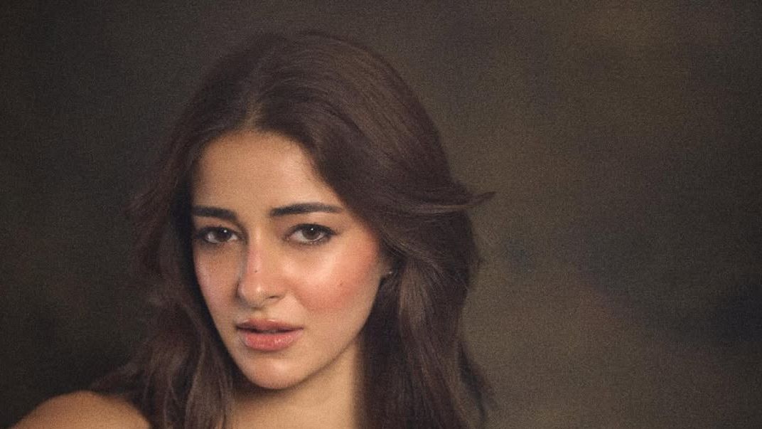 Anupama Parameswaran stepped out into the evening in a champagne-toned, body-skimming gown with delicate shimmer by Bhawna Rao, styled by Pooja Karanam. The sheer cap sleeves and sculpted bodice contoured her frame, while the strappy heels from Fizzy Goblet and minimal jewellery from 7th Avenue kept the look refined. The crimson rose in her updo added a romantic finish, while smoky eyes and a neutral lip made her look radiant and evening-ready.