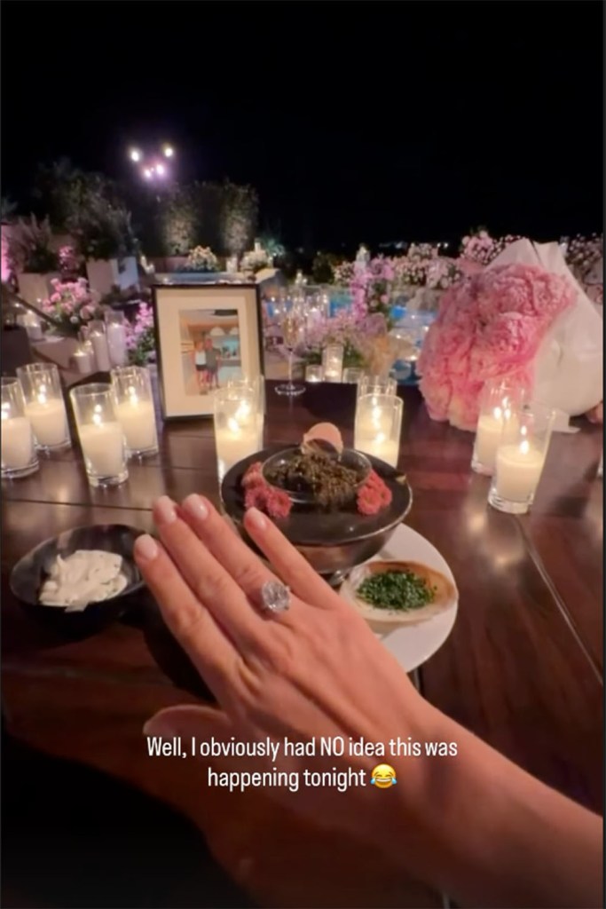 The four-time Grand Slam winner put her massive oval-shaped diamond ring on display, and shared that she was surprised by the grand gesture — which included tons of pink flowers and candles in an outdoor setting.
