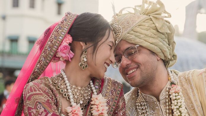 The sangeet became a live performance, with Verma and his friends playing across genres, from rock and metal to Bollywood classics. For the evening, Rawat stepped into a mint green lehenga with gold and silver embroidery and sequins, paired with green and mixed-metal jewellery, while Verma opted for a black Indo-Western set with a gold-work coat designed for movement. The stage itself was constructed as “disco mountains,” and the dance floor stayed full through the night.
