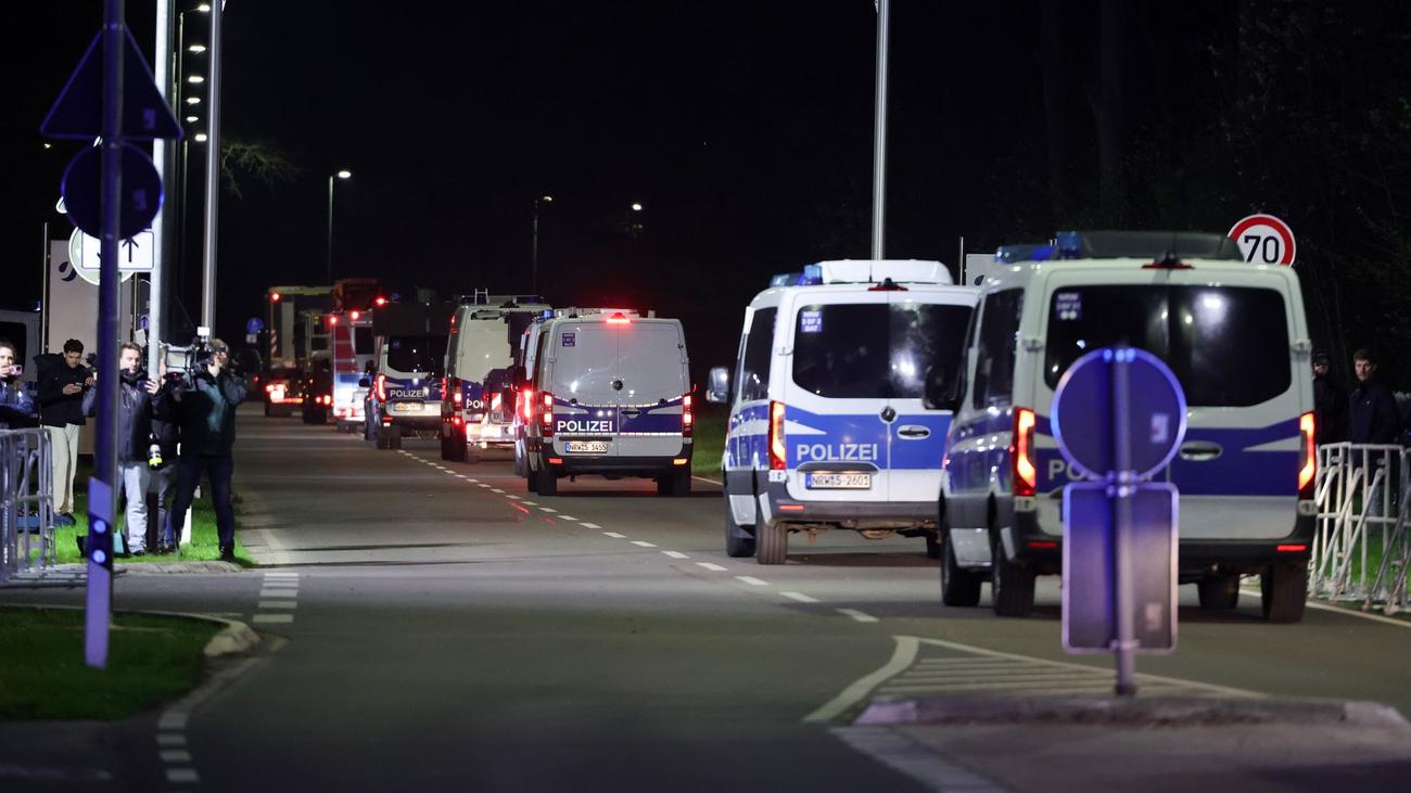 Der erste Atommüll-Transport vom rheinischen Jülich nach Ahaus im Münsterland rollt auf der Straße. Der Schwerlasttransporter mit einem Castor-Behälter hat das Gelände in Jülich verlassen, wie dpa-Reporter berichten. Dutzende Fahrzeuge der Polizei sind Teil des Konvois.