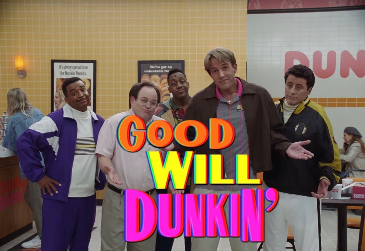 The group came together in a nod to Ben’s Oscar-winning film, Good Film Hunting, as they recreated the college-based flick for coffee chain, Dunkin’ Donuts. An opening message for the 60-second spot commercial, which was watched by millions around the world, announced: “Before the movie, a much better version of Good Will Hunting was made as a sitcom with a real genius in the lead and some other actors.”