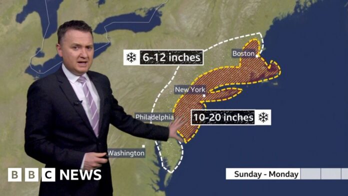 Blizzard conditions are set to bring major disruption across the northeastern United States, with wind gusts of up to 70mph forecast.