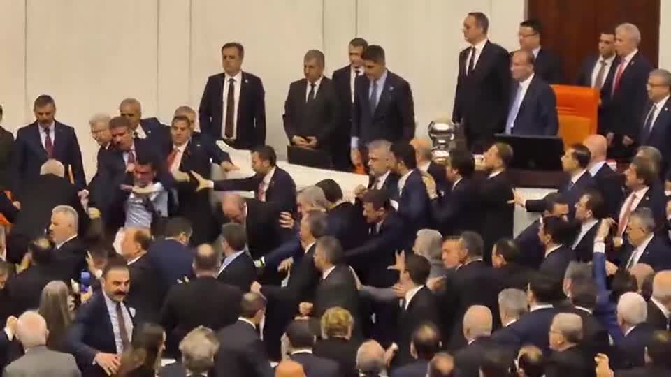 A brawl erupted in Turkey’s parliament on Wednesday after lawmakers from the ruling party and the opposition clashed over the appointment of a controversial figure to the Justice Ministry in a Cabinet reshuffle.