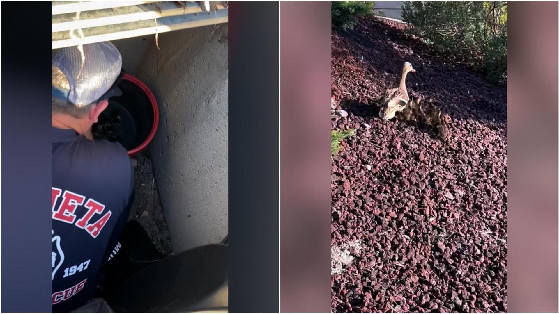 A Murrieta, in California, i vigili del fuoco sono stati impiegati in una missione non semplice: recuperare una famiglia di otto pulcini d’anatra caduti in un tombino piuttosto profondo dopo una deviazione pericolosa dal percorso di mamma anatra, rimasta in superficie a seguire la manovra di soccorso. Il capitano Brandon Roach si è calato nel buco e ha raccolto i piccoli pigolanti nel “secchio serpente” della squadra e li ha passati all’ingegner Justin Mack. Happy end: la corsa felice dei cuccioli verso la mamma e la famiglia ricomposta che trotterellava via