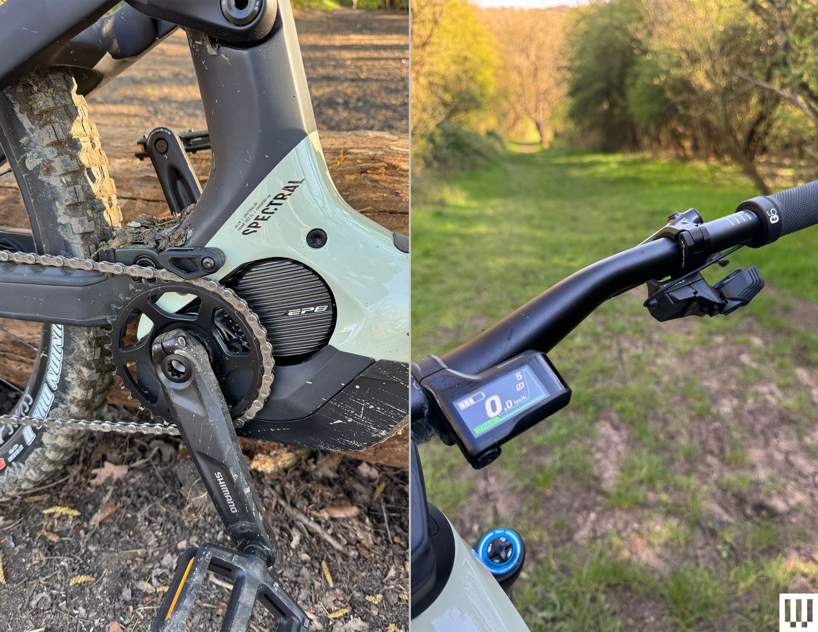 The Canyon Spectral:ON CF 8 ate up my local singletrack, muddy paths, and tight tree lines. The 64-degree head angle is fairly slack, but that suits both my level of riding and the terrain. It’s stable, and I feel like I’m in control on steep, fast descents. It feels incredibly stable and encourages me to ride harder and seek out more technical lines. Traction in the corners is excellent, and the geometry should appeal to the widest range of mountain bikers. Beginners will take confidence from the fact that you’ll need to work hard to go over the handlebars.