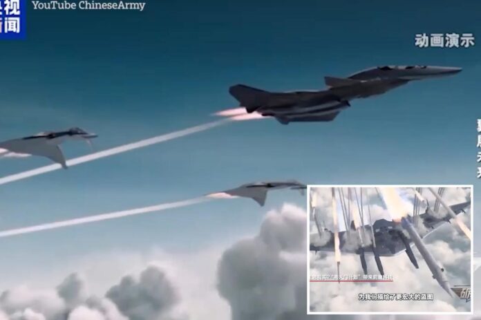 State media blasted out an over-the-top generated video on Tuesday of the Luanniao carrier apparently speeding on the edge of the atmosphere while firing off missiles and launching a barrage of jets.
