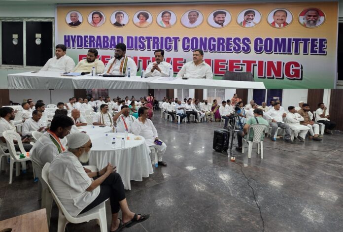 Hyderabad: The Hyderabad district Congress committee (DCC) has stepped up efforts to strengthen the party’s presence in the Old City ahead of the GHMC elections. For this purpose, an executive meeting and ideology training session was held at Gandhi Bhavan, with over 100 office-bearers deliberating on voting patterns, low voter turnout, and strategies to consolidate support among politically disengaged sections.