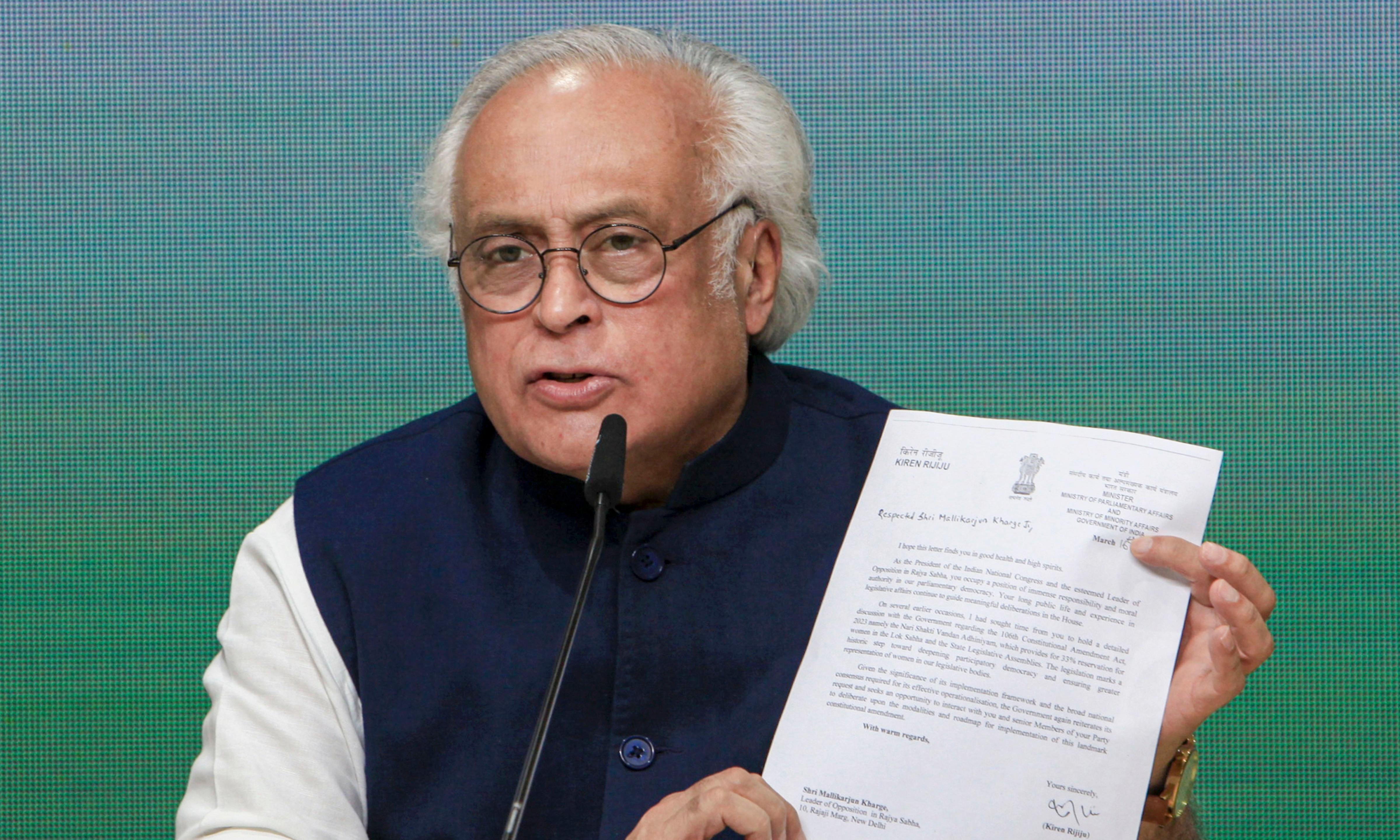 In all these letters, there was talk only of amendment to women’s reservation bill but now it is clear that this special session is also about delimitation, Ramesh said.