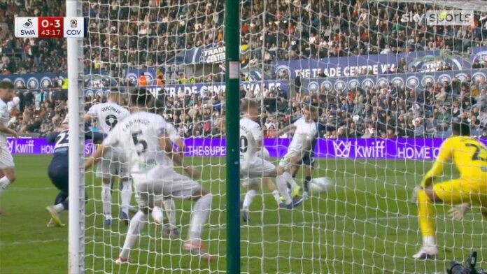 The contest began at frenetic pace with Josh Tymon sweeping a shot against the Coventry crossbar, and Ellis Simms sending a close-range volley straight at Swansea goalkeeper Lawrence Vigouroux.