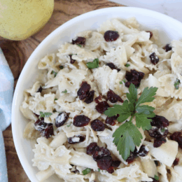 This Creamy Chicken Pasta with Pear is one of those recipes that feels fancy enough for a holiday party but simple enough to pull off on a weeknight—especially if you have cooked chicken ready to go. Sweet pears, salty Gorgonzola, tart cranberries, buttery sauce, and tender pasta come together in a surprisingly harmonious way.