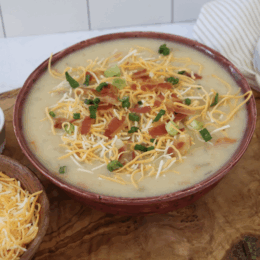 This Crockpot Potato & Bacon Soup is a cozy, budget-friendly slow cooker meal made with potatoes, veggies, cheddar, and crispy bacon. Easy, creamy, and perfect for busy weeknights or cold winter evenings.