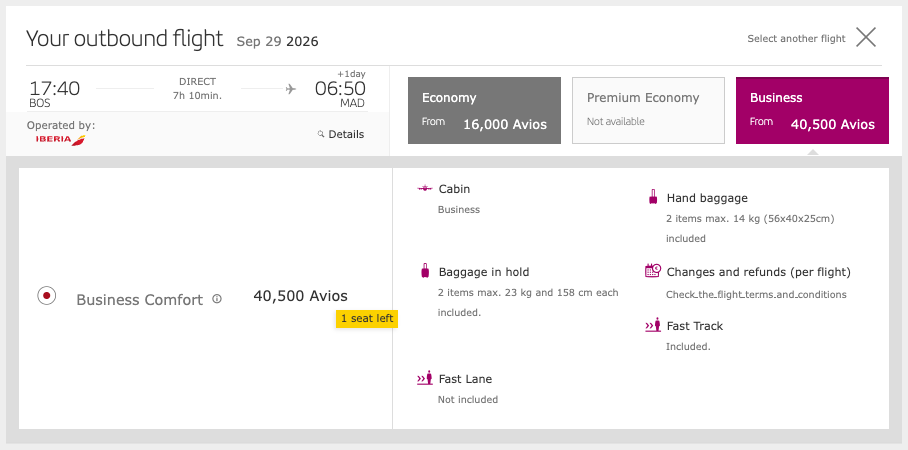 • Best way to book: Directly with Iberia using Avios or by transferring Chase points for a 20% bonus.