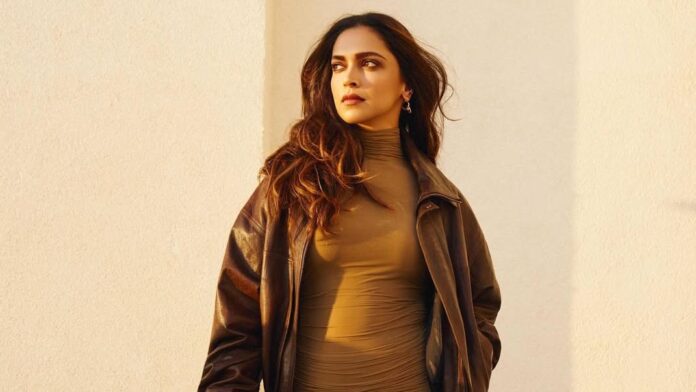 Adding a hint of cool, off-duty contrast, Priyanka Kapadia Badani styled Padukone’s dress with an oversized brown aviator leather jacket. Quintessential quiet luxury accessories featured a Louis Vuitton monogrammed side-trunk handbag, oversized LV sunglasses and black boots.