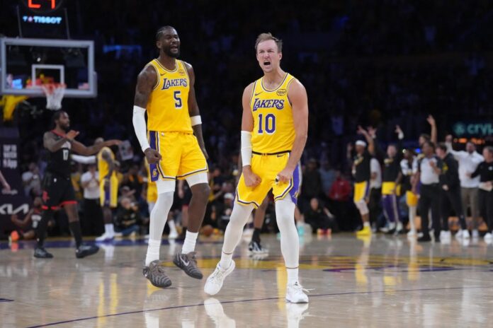 LOS ANGELES — Luke Kennard scored a career playoff-high 27 points, LeBron James had 19 points and 13 assists, and the short-handed Los Angeles Lakers capitalized on Kevin Durant’s injury absence for a 107-98 victory over the Houston Rockets in the opener of their first-round playoff series on Saturday night.
