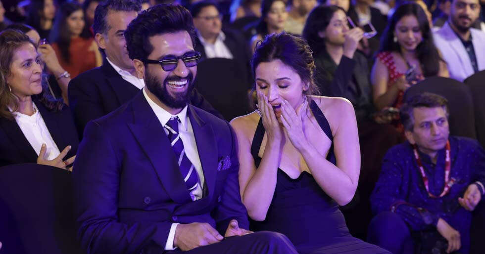 The two actors were seated next to each other at the star-studded ceremony. In a candid moment, Vicky was spotted holding up his phone and showing something to Alia. Her immediate reaction saw her hands flying to her mouth and eyes widening in visible surprise. This light-hearted moment was enough to send fans into a spiral of speculations.
