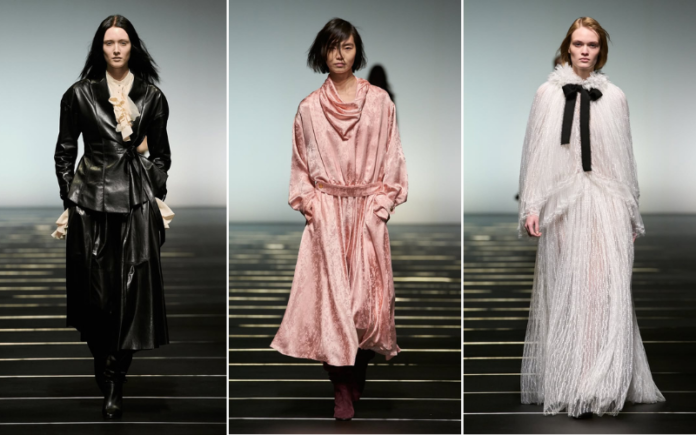 Dubai Fashion Week Day 1 also welcomed a striking presentation from Ludovic de Saint Sernin, whose eponymous label is known for its refined minimalism and unapologetically sensual edge. Through a series of sharply tailored basics elevated with fluid lines and subtle detailing, Saint Sernin showcased a collection that felt both modern and intimate — a quiet counterpoint to the more theatrical runway moments. The presentation resonated with guests for its focus on precision, fluid movement, and a confident yet understated aesthetic that reflects the evolving dialogue around gender, form, and contemporary dressing.