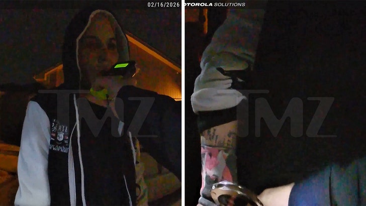 Watch the video … in the first one, Kim looks totally out of it as she’s given a preliminary breath test. She clearly didn’t pass the test, because cops immediately started putting handcuffs on her.