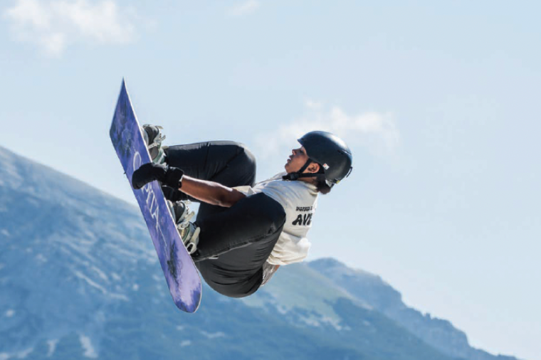 Amenah AlMuhairi, the UAE’s 17-yearold snowboarding prodigy, is due to fly to Canada to represent the UAE in the FIS Snowboarding Junior World Championship a few hours after her Emirates Woman interview. If she’s feeling nervous, you wouldn’t know it. “I started skiing when I was five at Ski Dubai,” Amenah, fondly known as Moon, says. “It was in preparation for a family trip [to Bosnia]. Then, when we went on the trip, one of my mom’s friends asked if any of us wanted to try snowboarding. I’d never heard of it before, but my brother and I both said ‘yes!’” It was an instant hit. “I loved every second, I didn’t touch the skis for the rest of the trip,” she laughs. “I was seven, so I’ve been doing it for 10 years now.” Did sibling rivalry play a part in her initial drive to succeed? “We’re very competitive,” she affirms. “It was always about who could pick things up the fastest, who could turn the most, who could be the best – everything was a competition, I feel like that pushed me further, faster. Since my brother was older and he picked up sports relatively easily, I had to pick it up even faster.” But how easy could it be to pick up a snow sport, living in the desert? “Obviously, we have Ski Dubai, and access to that facility 365 days a year is a big positive. Of course, it’s an unconventional place to do an unconventional sport, but I am very lucky that we are close to a lot of countries that I can travel to in close proximity.” She talks animatedly about trips to Austria, Switzerland and Italy – referencing Laax (often referred to the snowboarding freestyle capital of Europe) as her favourite place to train. “Even if you have a bad day riding here, you’ll still feel good. It’s just a place where you feel happy.”