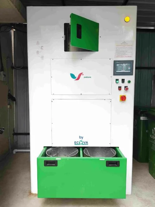The liners holding the sanitary pads are fed into ‘SanEco’, where they are disintegrated via a mechanical shredder.