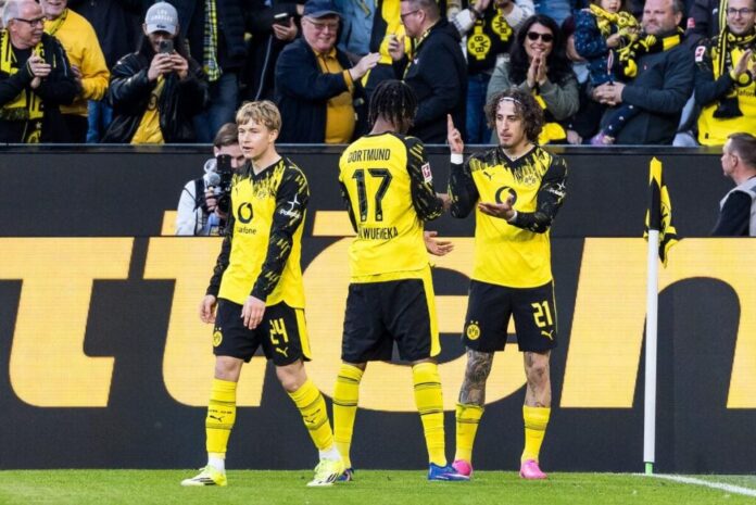 Maximilian Beier, Serhou Guirassy and Ramy Bensebaini gave second-placed Dortmund complete command with first-half goals, with Fabio Silva adding gloss to the scoreline late on.