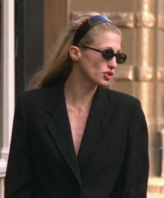 This look was often seen on Bessette-Kennedy when she was spotted in public, sometimes with her hair up like Grande’s or left loose. And with the show Love Story: John F. Kennedy Jr. & Carolyn Bessette bubbling Bessette-Kennedy’s life and look up to the tops of viewers’ minds, there has been a run on similar headbands. (As a beauty editor, I’ve received more than a few pitches for “CBK headbands.” I have thoughts on that.)