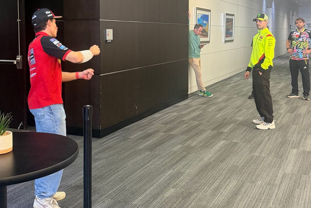 Marquez and Di Giannantonio traded a few words in between their press briefings