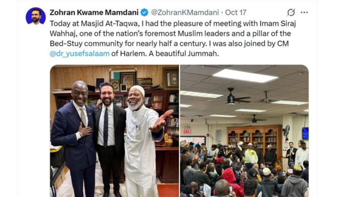 “Today at Masjid At-Taqwa, I had the pleasure of meeting with Imam Siraj Wahhaj, one of the nation’s foremost Muslim leaders and a pillar of the Bed-Stuy community,” wrote Mamdani, who was a toddler when terrorists parked a bomb-laden van in the garage beneath the North Tower of the World Trade Center.