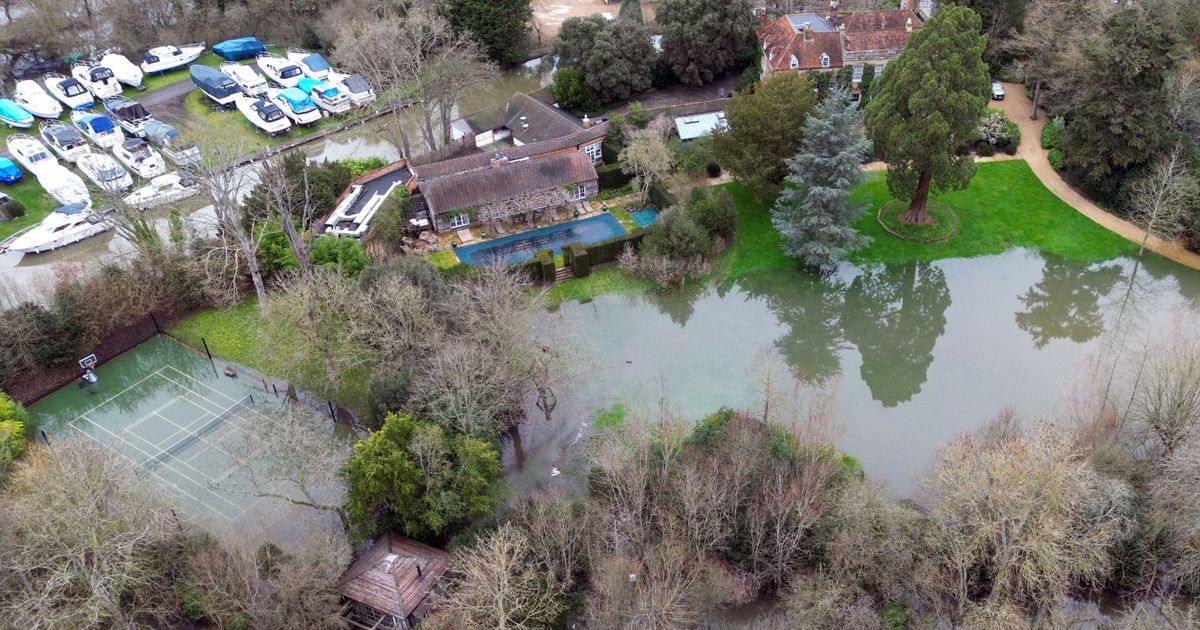 George Clooney, Debbie McGee and Russell Brand’s lavish homes in Berkshire have been left swamped after the River Thames burst through the banks, causing havoc across the surrounding areas