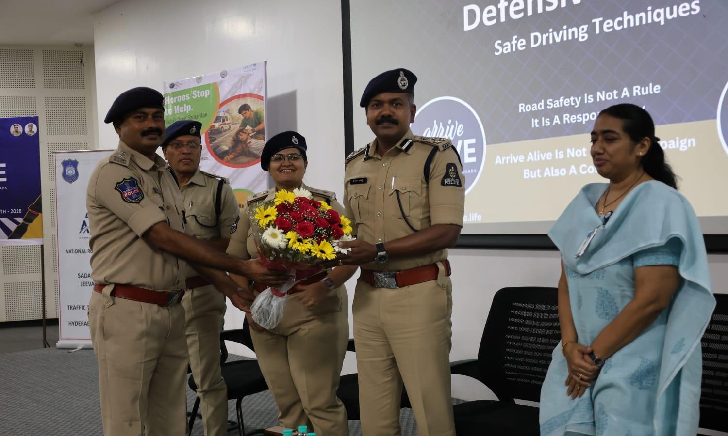 Traffic II DCP Kajal Singh cautioned against negligent and drunk driving, urging motorists to adopt defensive driving. Additional DCP C. Venugopal Reddy, ACP K. Hari Prasad, inspectors from Jubilee Hills traffic police station, and doctors from Apollo Hospital also participated in the programme.