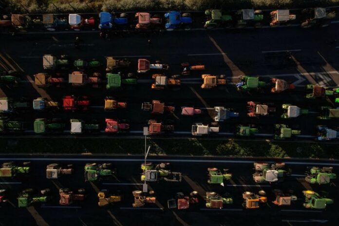 Police used tear gas on Sunday as the farmers brought hundreds of tractors to block the Athens-Thessaloniki national highway near the central city of Larissa.