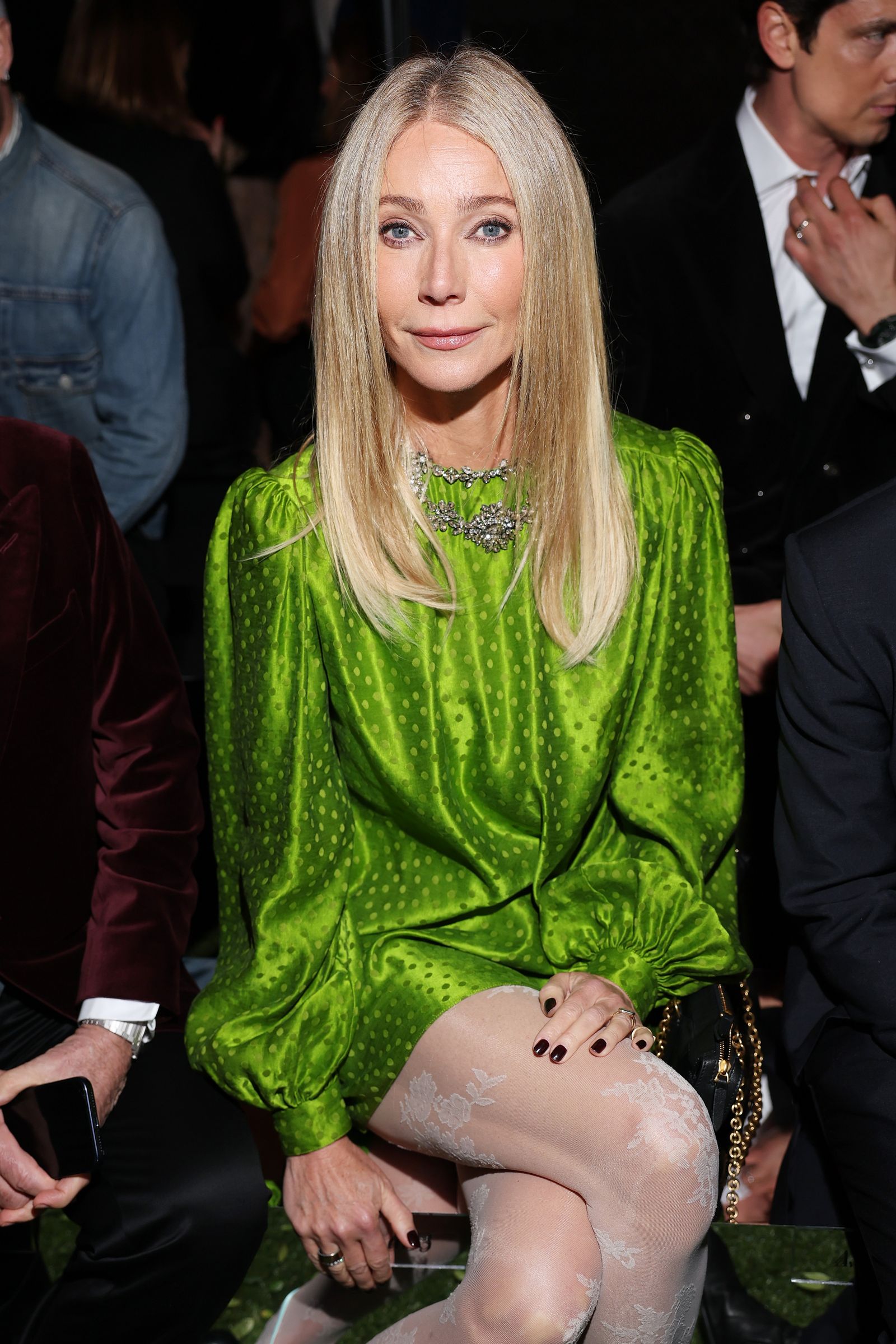 The Marty Supreme star flew to Paris for the Valentino show just a few days before the Academy Awards and sat front row in a cheery chartreuse dress paired with dark, glossy nails—a cool contrast that blended the springy mood that always perks up around March and a hint at the fall/winter designs presented by the fashion house. (Remember, they’re showing fall and winter designs at this Paris Fashion Week.)