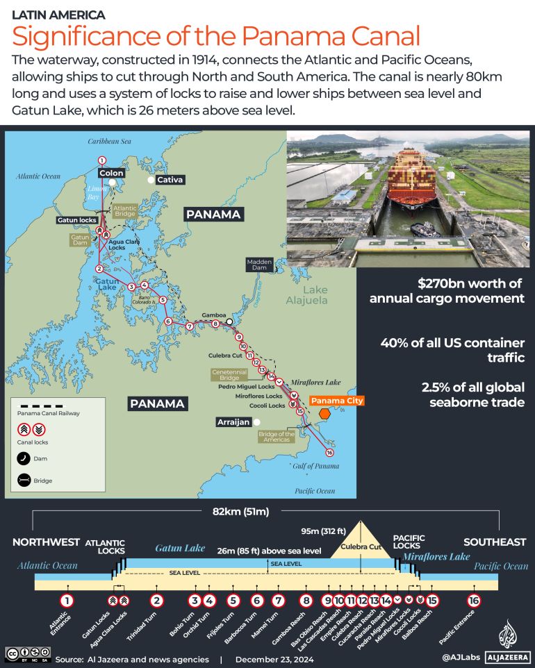“Most of the trade flows going through the canal are between the US East Coast and Asia, but South American intercoastal trade, trade between the US East and the West of South America, and between Europe and the West Coast of South America would also be affected,” he told Al Jazeera.