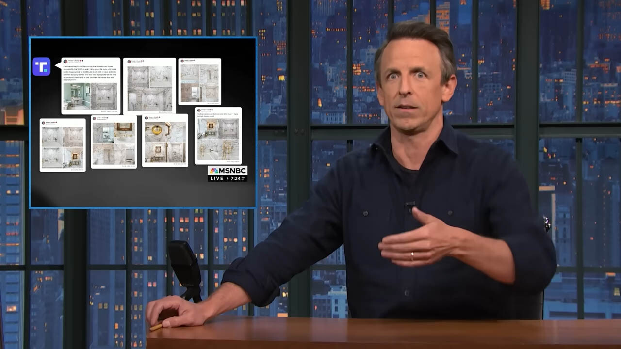 “Tomorrow, by the way, I’m probably going to wake up to a Trump post that says, ‘Seth Meyers won’t stop talking about the White House bathroom.’”