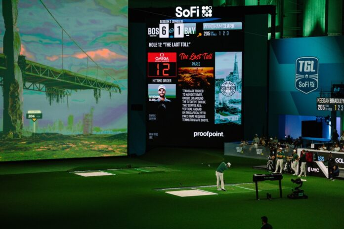 TGL’s format strips away that payout potential, but it offers something other golf events can’t: live betting. A golf broadcast shifts to different holes for shots that happen simultaneously, so live shot markets are impossible, whereas in TGL, bettors can target head-to-head outcomes, longest drives, and closest to the pins.