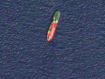 Satellite imagery has caught vessels being repainted at sea in an apparent effort to disguise their identity. The Panama-flagged Tasca changed its orange deck to green in January last year, days after being blacklisted by the US.