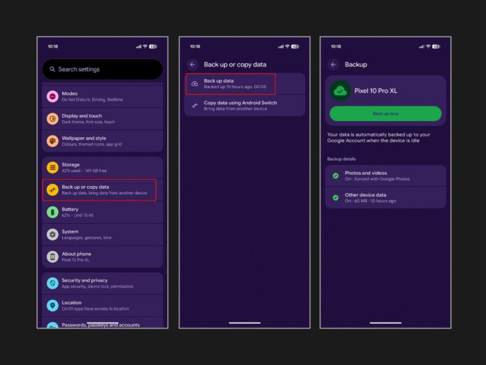 The simplest and easiest backup option is Google’s cloud service, which is built into Android. These screenshots are from the process on a Pixel 10 Pro XL. Your precise route may differ slightly, depending on your phone model.