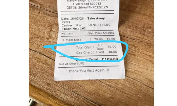 Hyderabad: Despite a clear ban by India’s consumer watchdog on adding “LPG charges” or “gas surcharges” to customer bills, several restaurants across Hyderabad are still adding charges to bills.