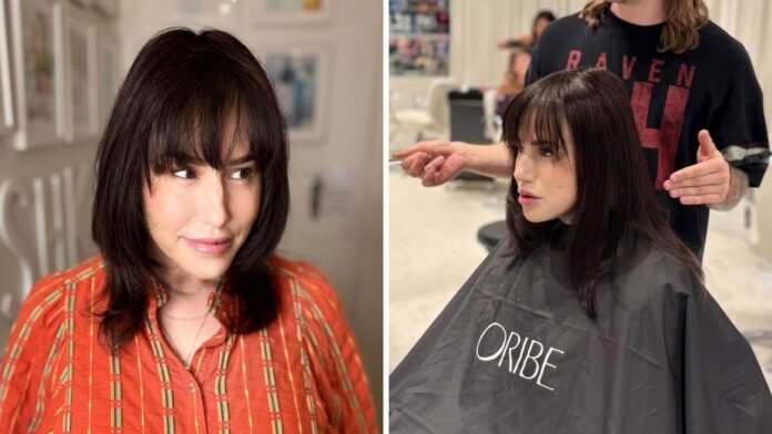 Although you can wear it right out of the box, Whiteman says human-hair toppers can be customized just like your own hair. I turned to my stylist, Billy Hannam at Anushka Spa & Salon in Palm Beach, to help me figure out how to make these toppers look like I’m… not wearing one. He’s been helping me shape my existing hair to seem as not-scant as possible, so I trusted him to transform them into a natural-looking part of my shaggy, layered style. After comparing three toppers, we spent my appointment focused on a dark brown, 12-inch long style with pre-cut bangs by Irresistible Me, a brand that also uses human hair for their toppers, extensions, and wigs. The color was an outrageously perfect match, and the bangs would make it easier to blend into my existing cut.
