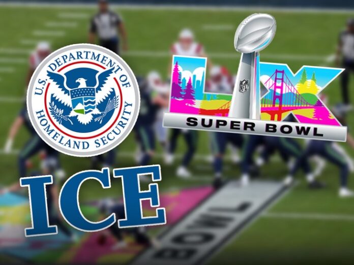 ICE announced they wouldn’t be running immigration enforcement at Levi’s Stadium during Super Bowl LX, but their presence was still felt … We got pics of ICE ads around the venue before the big game.