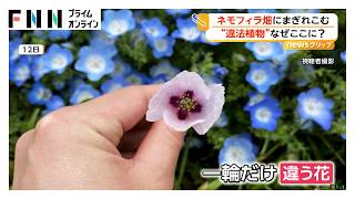 A species of poppy containing narcotic compounds was found earlier this week standing alone among about one million nemophila flowers in full bloom at Uminonakamichi Seaside Park in Fukuoka City.