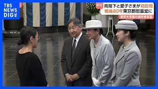 The Emperor, Empress, and their daughter Princess Aiko visited the Tokyo Metropolitan Memorial Hall in Sumida Ward on Thursday afternoon, marking their first visit to the site as Japan observes the 80th year since the end of World War II. They were greeted upon arrival by Tokyo Governor Yuriko Koike and other officials.